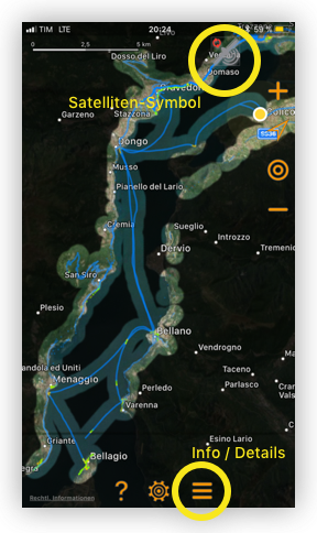 Wenn man auf das Satelliten-Symbol tippt erscheint die folgende Bildschirm-Maske.