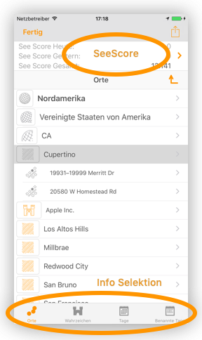 Im oberen Bereich wird die Übersicht der SeeScore Punkte angezeigt. (Erläuterung weiter unten)
